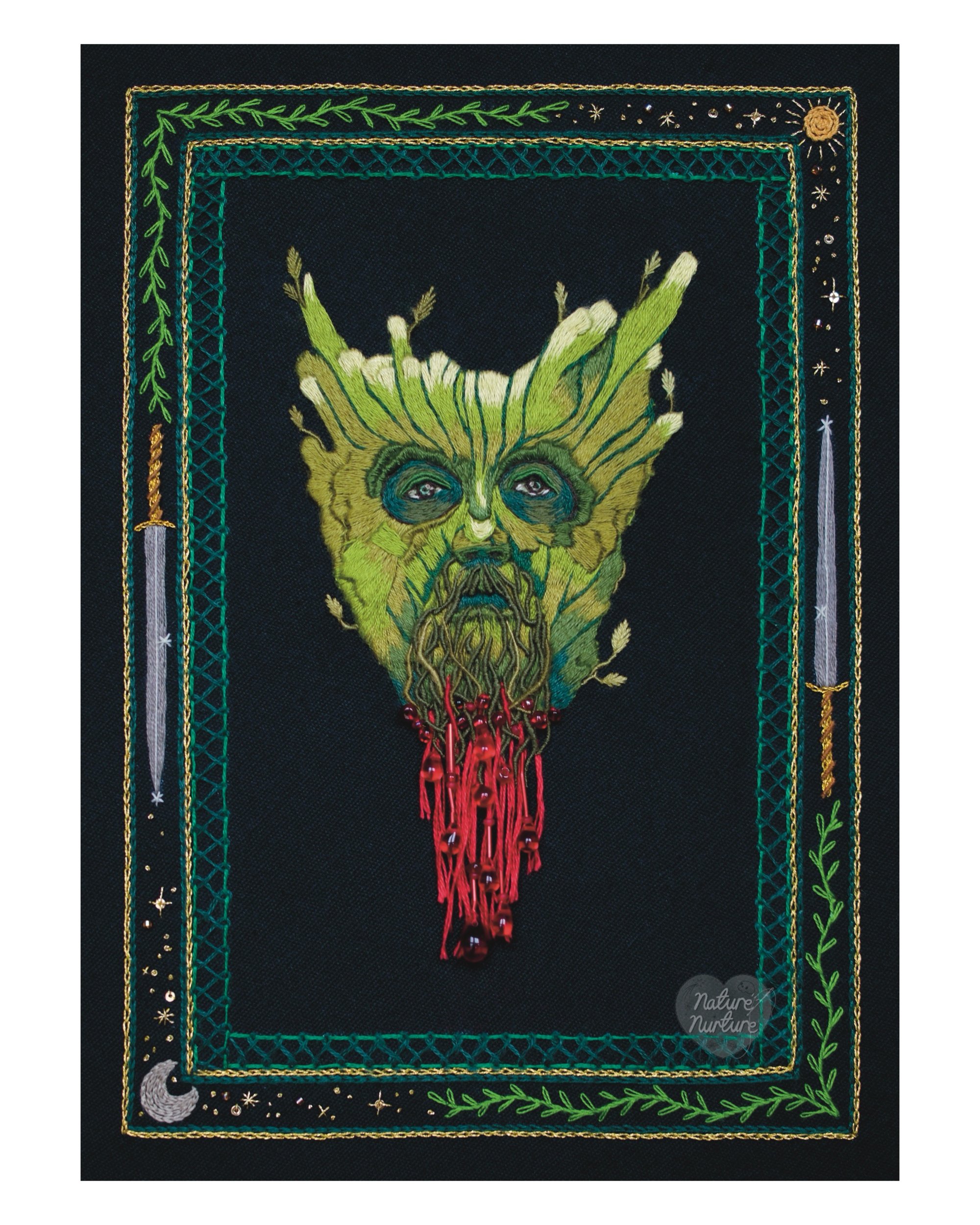8x10" print of 'A Christmas Game' embroidery on heavy stock 250gsm Perlino Cotton.