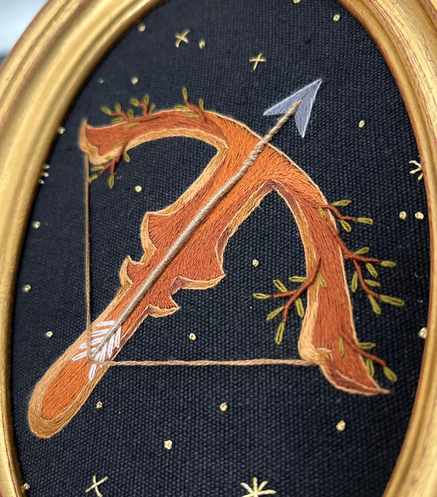 Mixture of velvet, beads and embroidery. Framed within a vintage wooden frame (without glass). Embroidery 5.5x3.5 " (framed approx 7x5").